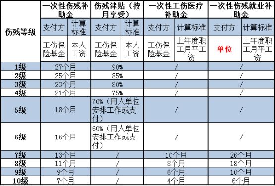 二、关于一次性伤残补助金、伤残津贴、一次性工伤医疗补助金、一次性伤残就业补助金