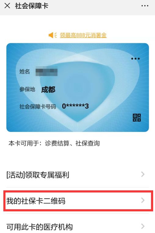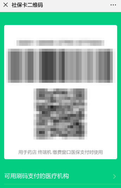操作到这一步,就可以用微信端的电子社保卡在药店或医院扫码结算了。